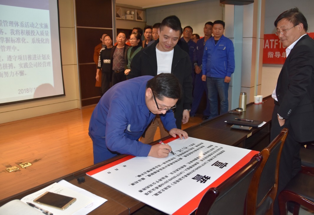 會上,質量管理(li)體系推進小組(zǔ)成員進行了集(jí)體宣誓并現場(chang)簽名,充分展示(shì)了開展《質量管(guǎn)理體系提升》項(xiang)目工作的決心(xīn)。相信在公司上(shang)下一心、積極努(nu)力下,湖北龙岩(yán)浩发机械制造(zào)有限责任公司(sī)(3G网站)一定能真(zhēn)正實現質量管(guǎn)理體系提升,将(jiang)IATF16949:2016質量管理體系(xì)在企業内部有(yǒu)效運行,為企業(ye)持續健康發展(zhan)保駕護航!